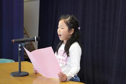 続いて、5年生の畦池玲菜(あぜち れな)さんが発表しました。