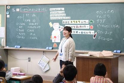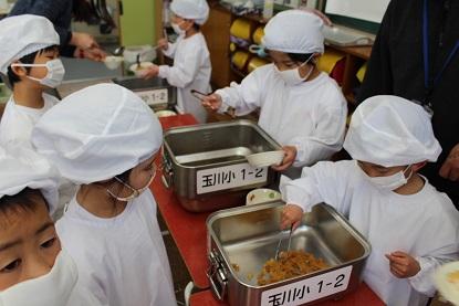 玉川小学校の残食(食べ残し)の量のクイズのあと、