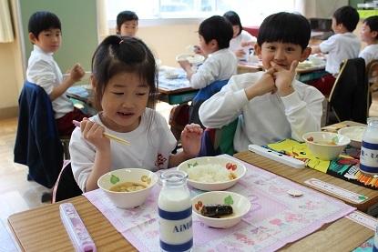 落ち着いた配膳、楽しく会食、食べられる子はおかわり。