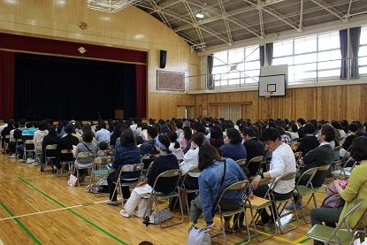 5年生です。とてもよい姿勢で始業式に臨んでいます。「突破5」で一回り大きく成長できたかな?どんな学年に成長していくか楽しみです!