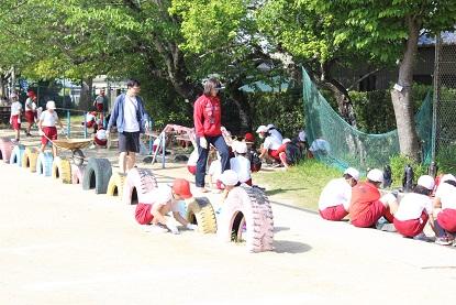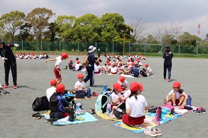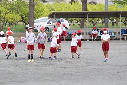 あたたかだったこの日、やる気満々の子どもたちはみるみる汗をかいていきました。