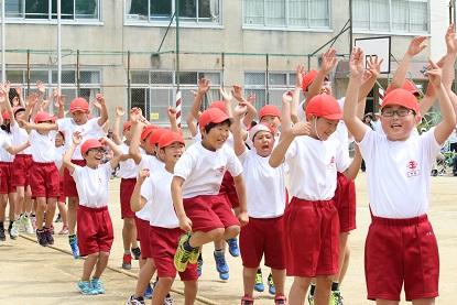 放送で「フレー!フレー!たーまーがーわー!」と5年生が叫ぶと、