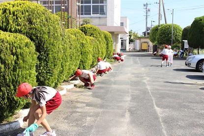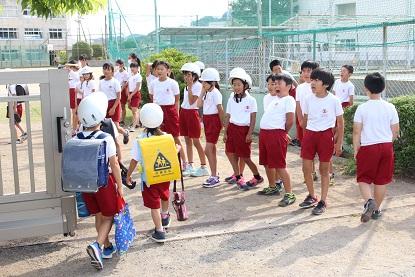 暑い中での登下校も校区、見守り隊のみなさんにお力添えをいただき、安全に登下校できています。