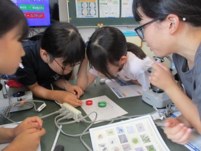 午前中は視聴覚教育センターでは,プラネタリウム学習をしたり,顕微鏡を使って微生物の観察をしたりしました。子どもたちは,初めて見る微生物に驚きの声を上げていました。