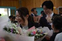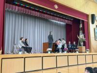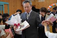 退任式でした。転任された8名の先生がたへお手紙と花束をわたす、心あたたまる式でした。