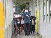 大きな地震がきたときに、子どもたちが自分で考えて行動できるために訓練を行いました。