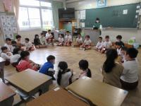 近隣の園児のみなさんと1年生が交流しました。1年生もよきお兄さん、お姉さんとして活動しました。給食もいっしょに食べました。「もうすぐいっしょにべんきょうするよ」心で伝えながら交流しました。きっと伝わったと思います。