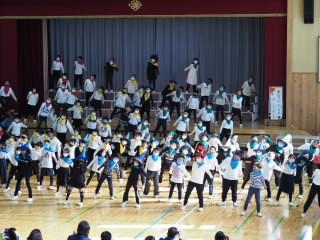 お祭りをテーマに,「よさこい」のストトコ踊りや,群読の「お祭り」、そして、昨年よりもさらにパワーアップしたソーラン節を披露しました。