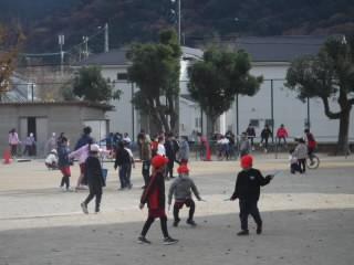 (先生たちも、児童といっしょに外遊びをしています。大人も寒さに負けず・・・)