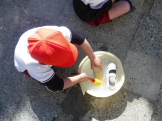 寒い中、「手が冷たい」と言いながらも、一生懸命上靴洗いに取り組みました。