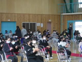 本年度の卒業式は、5年生は参列しないため、これまで6年生だけで練習を行っていましたが、今日は保護者席に5年生が座り、先輩たちの練習の様子を見学しました。