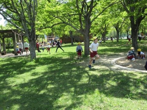 とても天気のよい日となりました。1年生と6年生の手つなぎ交流会の日です。