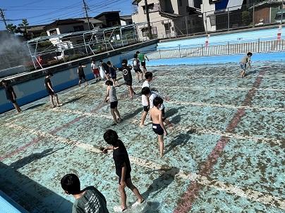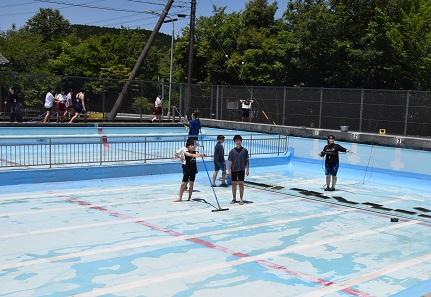 とは言え全ての学年が民営プールとなった訳ではありません。学校のプールを使う学年もいます。そうした学年のために、6年生の4クラスがプール掃除をしてくれました。