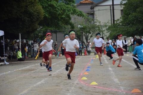プレハブができたことで運動場が狭くなり、低中高学年の3部制で行いましたが、大勢の方に参観に来ていただいたり、体育館でオンラインで応援したりしたこともあり、とてもにぎやかな運動会となりました。競争遊戯や徒競走、表現運動と、どれも見ごたえがあり、あっという間の半日でした。