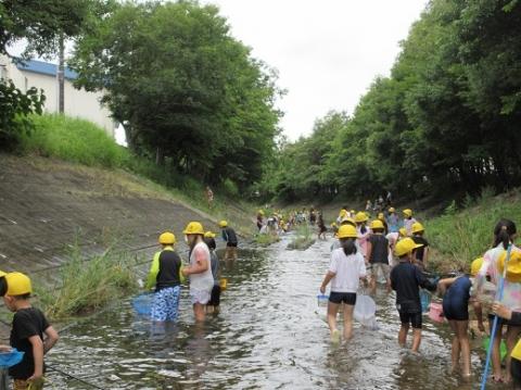 捕まえた生き物は学校へ戻ってきてスケッチしたり、川に戻したりしたようです。生き物がこんなところにいるんだ!という勉強になったようです。