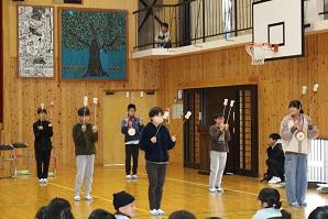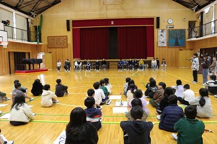 2時間目に全校児童が卒業を控えた6年生に