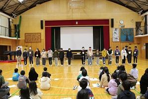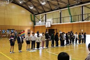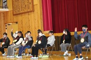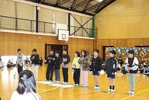 会の終わりには、全校児童から6年生に