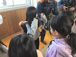 その後,実際に防火衣を着たり,ホースを持って重さを体感したりしました。