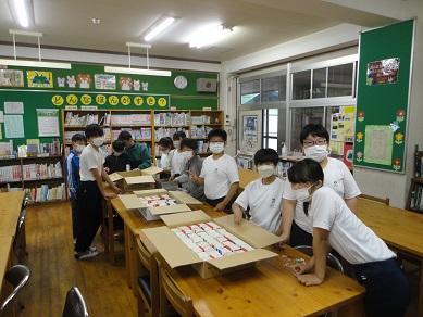 朝の活動時間に、6年生がベルマーク回収運動で集まったベルマークの仕分け作業に取り組みました。