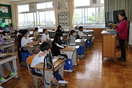 読み聞かせボランティアさんによる読み聞かせが、朝の活動時間に各教室で行われました。