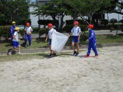 全校児童で朝の時間を使って運動場や校庭、花壇の草取りをしました。今年は、暑さのせいか、例年以上に草がたくさん生えていました。