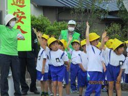 夏の交通安全市民運動にあわせて、健全育成会のみなさまがあいさつ運動をおこなってくれています。登校してくる児童たちの元気なあいさつの声が響きました。