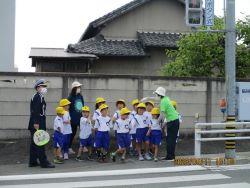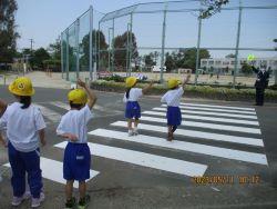 年末の交通安全市民運動にあわせて、実施しています。また、地域の方が校区内では毎朝の児童の安全な登校を見守り、ゼロのつく日には保護者の方が黄色の旗をもって各町内に立ってくださっています。