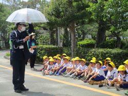 市役所安全生活課の方から、豊橋市内の不審者の情報や不審者から自分の身を守る方法を教えていただきました。「つみきおに」「ハサミとカミはおともだち」の合言葉も学びました。