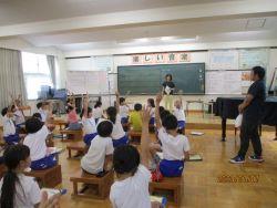 「リーダーを探せ」「いす取りゲーム」「フルーツバスケット」などをして、和やかで楽しい時間を縦割り班で過ごしました。熱中症対策のため、体育館や教室での活動となりました。