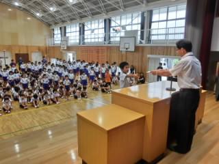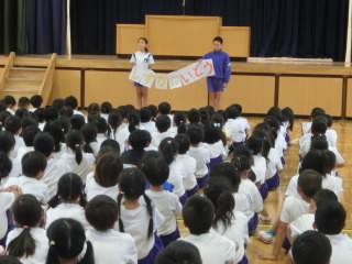 今年は全校児童が体育館に集まることができないため、放送での会となりました。