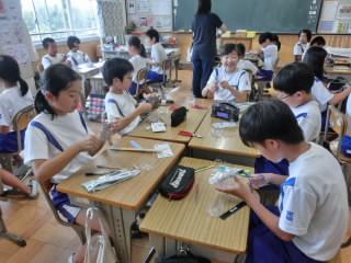 毎年夏になると、校区の河合さんが学校に来て、家庭科で使う包丁を砥いでくださいます。
