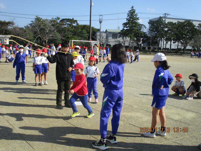 給食後、それぞれの場所で縦割り班で過ごしました。「リーダーを探せ」や「いす取りゲーム」「ドッジボール」などをして親睦を深めました。