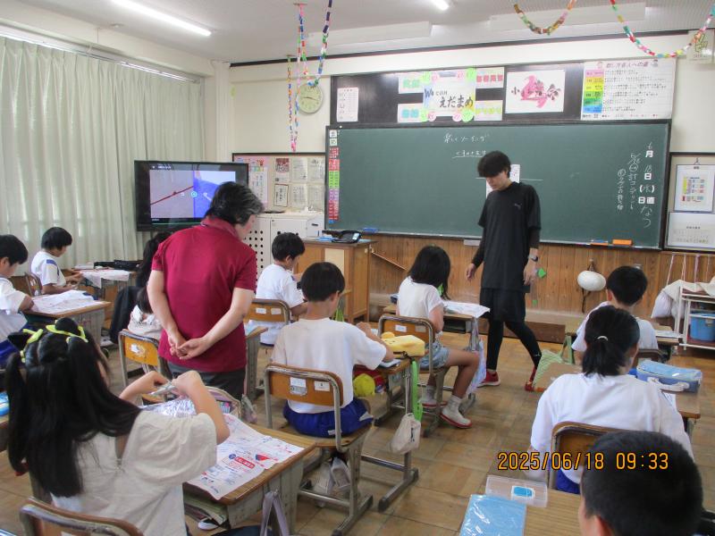 穂の国の森から始まる地域づくりの会のかたにお手伝いいただいて、6年生が教室の掲示板に杉の木の板をはりました。教室が木のかおりでいっぱいになっています。