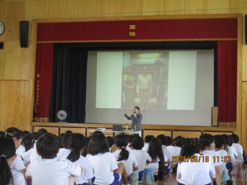朝読書の時間に、図書委員が1年生から4年生までの教室で、本の読み聞かせを行いました。