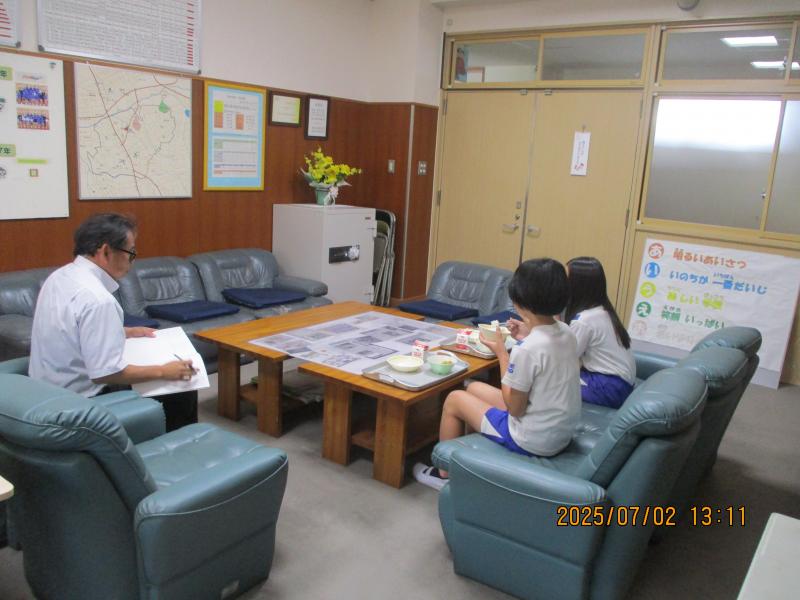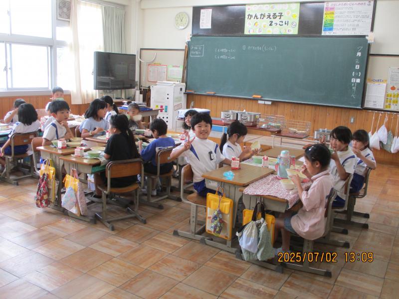 学級花壇で育てたさつまいもを使って、大学芋とパウンドケーキを作りました。おいもパーティに招待したお客さんを「こちらへどうぞ」と、おもてなししていました。