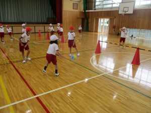 9月は体育科で「プレルボール」を行いました。小学生になってから初めてのネット型の種目になります。