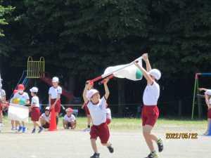 お家のかたがたが見ている中、子どもたちは、これまでの練習の成果を発揮しようと、どの種目においても一生懸命でした。また、笑顔いっぱいでした。大きなけがもなくできたこと、何より開催できたことを大変うれしく思います。皆様にご協力いただきありがとうございました。