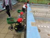 日頃は、掃除の子や用務員さんを中心に、外の環境整備を行っていますが、全校127人で行うと、短い時間でもきれいになります。