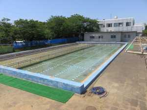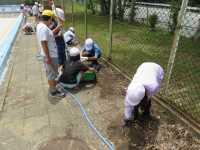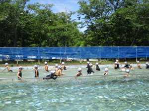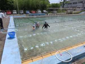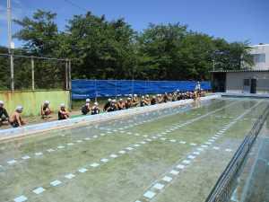 小プールを使っての授業でした。少し物足りないかなと思いましたが、3年ぶりの水泳の授業ということで安全第一に行いました。