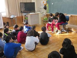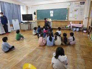 10月3日(金)に、4・5年生が「赤ちゃん先生プロジェクト」のふれあい教室に参加しました。体育館で、6名の赤ちゃん先生たちから赤ちゃん一人一人の名前を聞いた後、各グループに分かれて手遊びや大きさ比べを体験しました。子どもたちは、赤ちゃんを慣れない手つきで抱っこしましたが、赤ちゃんが笑ってくれると嬉しそうにしていました。感想交流会では「自分も数年前はこんなに小さかったんだと驚いた。」「抱っこしたら手や足がすべすべで柔らかかった。」などの声が聞こえてきました。