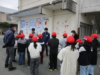 各教室では、入口の鍵を閉め、机や椅子でバリケードを作ってガラスが割れても遠くに散らばらないようにしていました。市内では、昨年85件の不審者事案が発生していて、約60件は小学生をねらった「声かけ」や「つきまとい」だったそうです。この校区は田んぼや畑が多く、少しわき道に入ると人通りも少なく危険な場所も多くあります。合言葉は「ハサミとカミはお友達」です。いざという時に自分で自分の身を守れるようにしましょう。