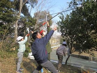 設楽町から預かった「しだれ桃」の苗を大切に育てます