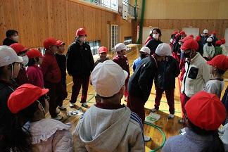 10月6日(月)2時間目に、不審者対応の避難訓練を行いました。5・6年生の教室付近で不審者が暴れ出したため、先生たちが「さす股」などを使って相手を取り押さえ、子どもたちを体育館へ安全に避難させるという内容でした。
