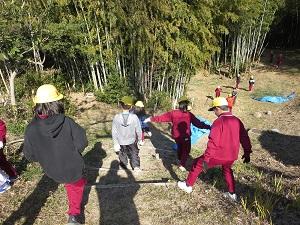 11月6日(木)、運営委員7名が中心となってルール説明を上手に終えた後、12グループのたて割り班に分かれて「マッサマンゲーム(前の子の言葉を覚えながらつないでいく遊び)」を行いました。高学年になると、より難しいワードを出してグループで盛り上がっていましたよ。