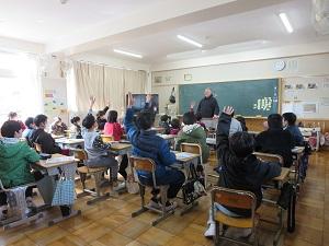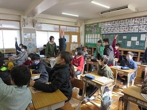 10月28日(火)5時間目に、プロバスケットボール「三遠ネオフェニックス」の元プロ選手による出前講座を実施しました。4年生と5年生が一緒に体験をして、ドリブルやフリースローの練習をしたり、元プロ選手とミニゲームを行ったりして、楽しい時間を過ごすことができました。ゴールが決まった時は、満面の笑みになっていましたよ!