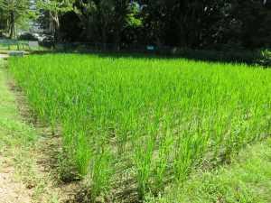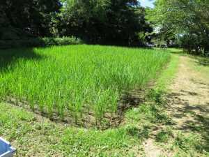 3年生は、担任の先生からのこぎりガマの使い方を教えてもらい、芋のつるを切りました。