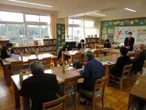 また、2時間目は、全学級の授業の様子を参観していただきました。その後の意見交換では、保育園と小学校のつながりの重要性についてご意見をいただきました。今後も機会を捉えて、児童の様子を見ていただき、学校経営へのご意見や学校関係者評価をしていただきます。