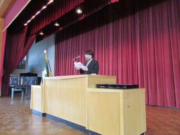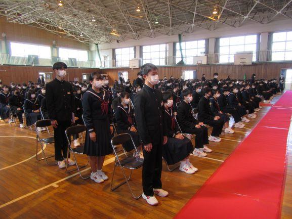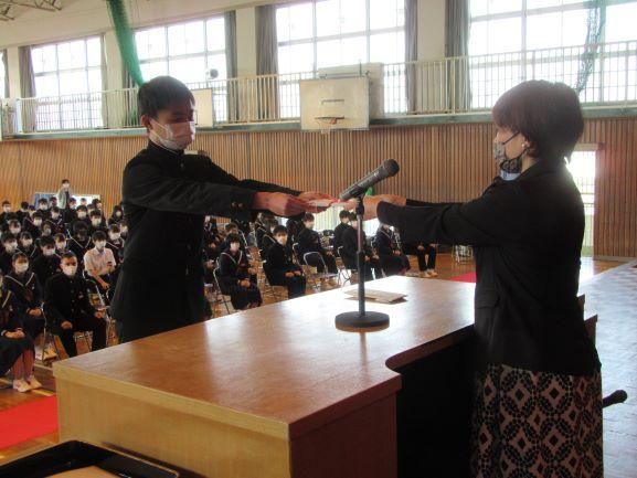 2時間目、同窓会副会長、PTA会長をお招きして、同窓会入会式を行いました。同窓会副会長から、入会のお祝いの言葉をいただきました。学年代表の紹介、同窓会記念品、PTA記念品をいただきました。