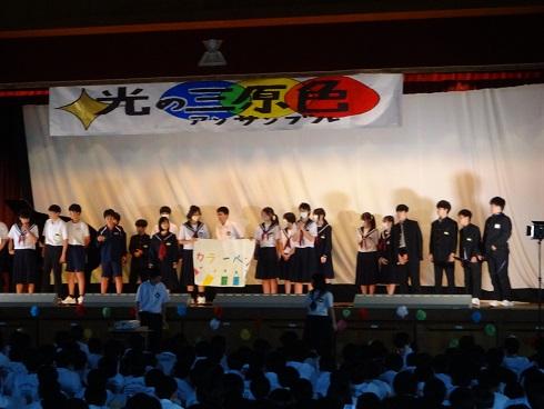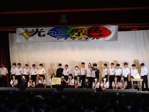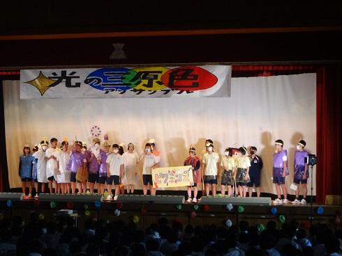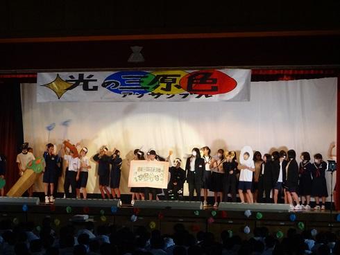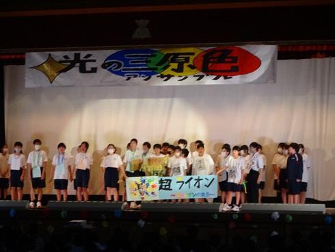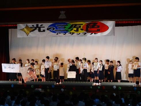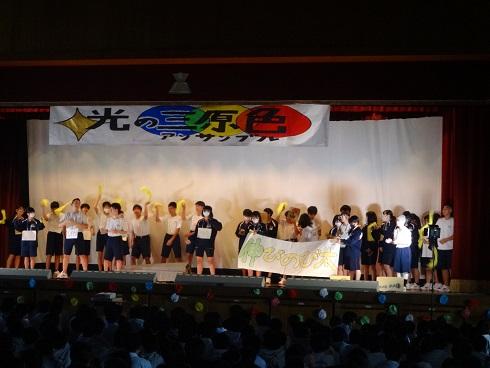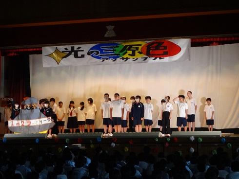 ジェスチャーゲームで楽しいひとときを過ごし、最後は全校で校歌を歌いました。