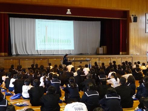 1年生生徒を対象に「目の健康」をテーマにした学校保健委員会を行いました。